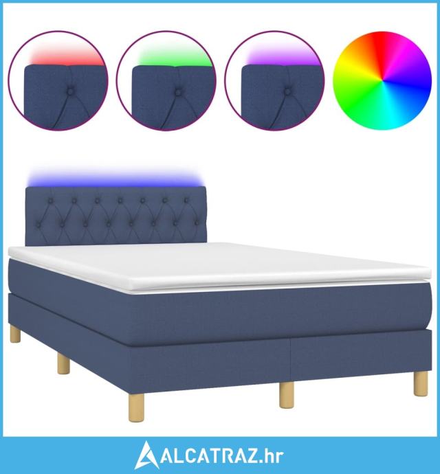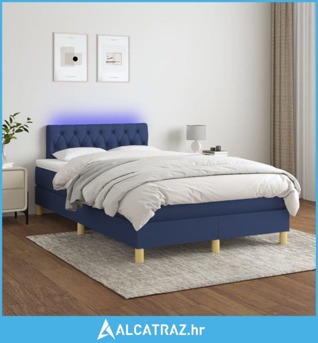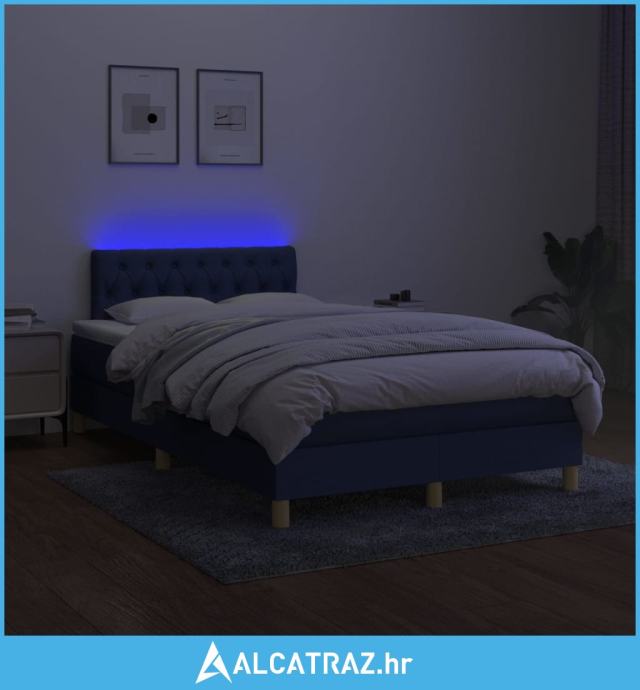 Krevet box spring s madracem LED plavi 120 x 200 cm od tkanine - NOVO