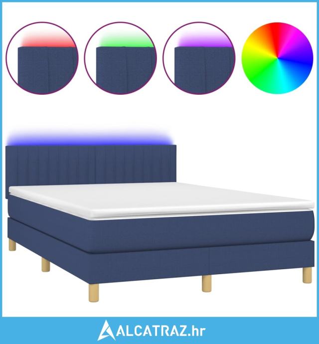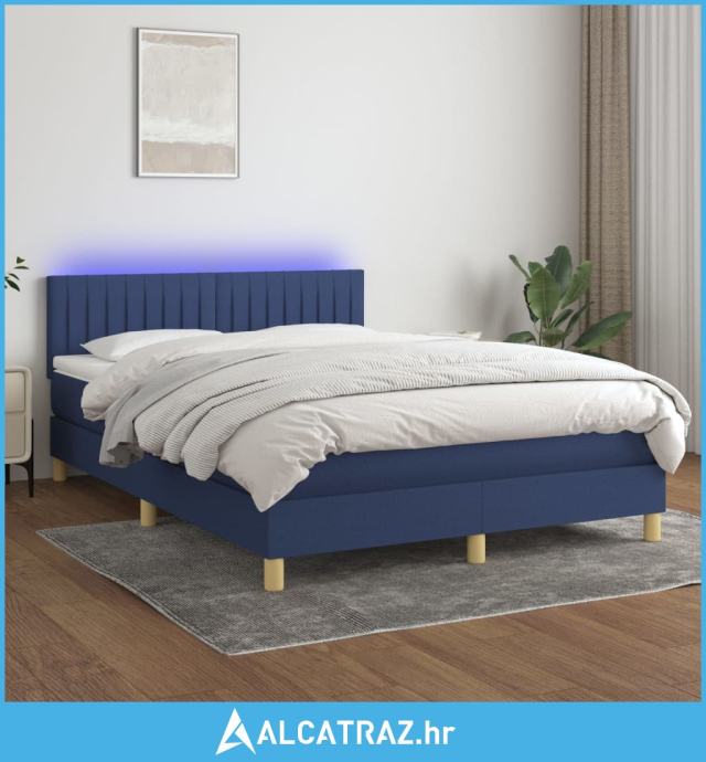Krevet box spring s madracem LED plavi 140x190 cm od tkanine - NOVO
