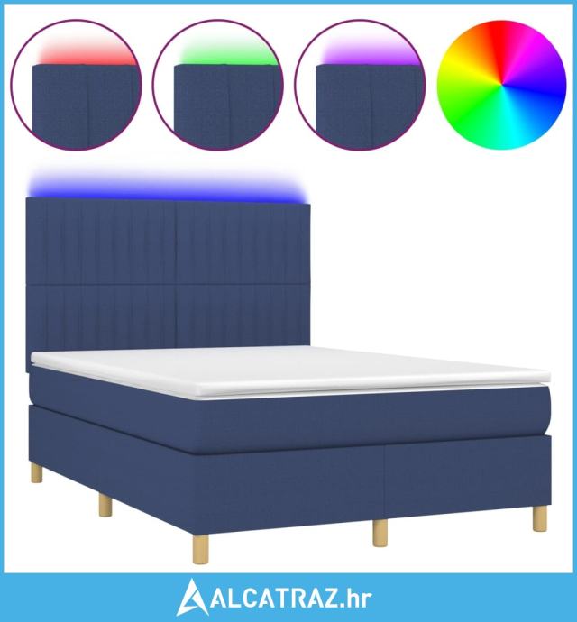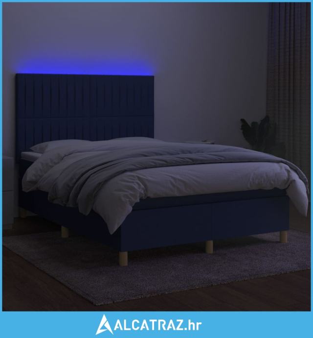 Krevet box spring s madracem LED plavi 140x190 cm od tkanine - NOVO