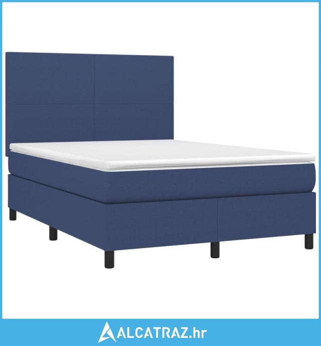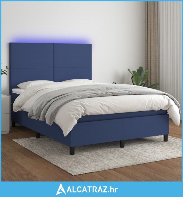 Krevet box spring s madracem LED plavi 140x190 cm od tkanine - NOVO