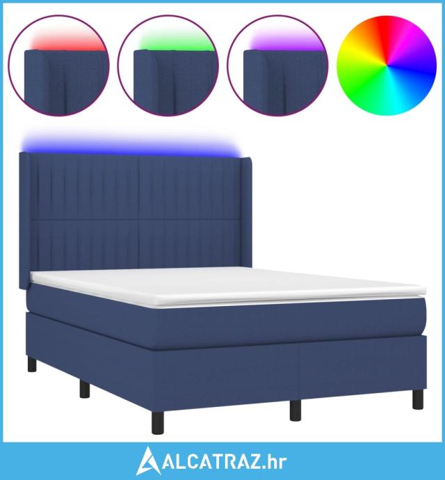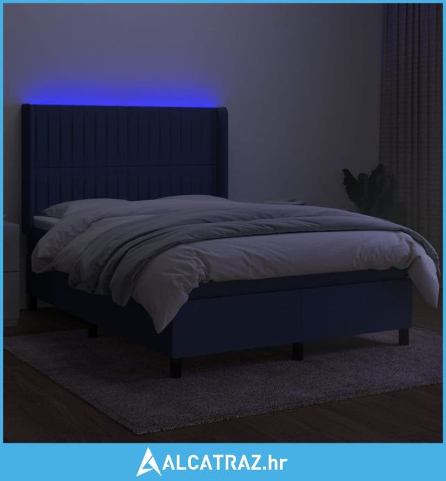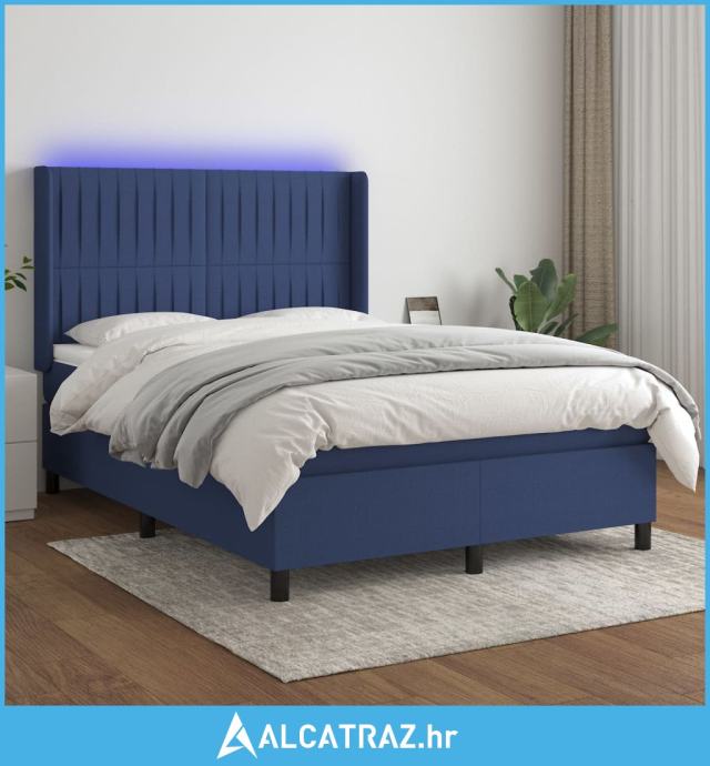 Krevet box spring s madracem LED plavi 140x200 cm od tkanine - NOVO