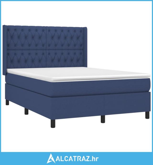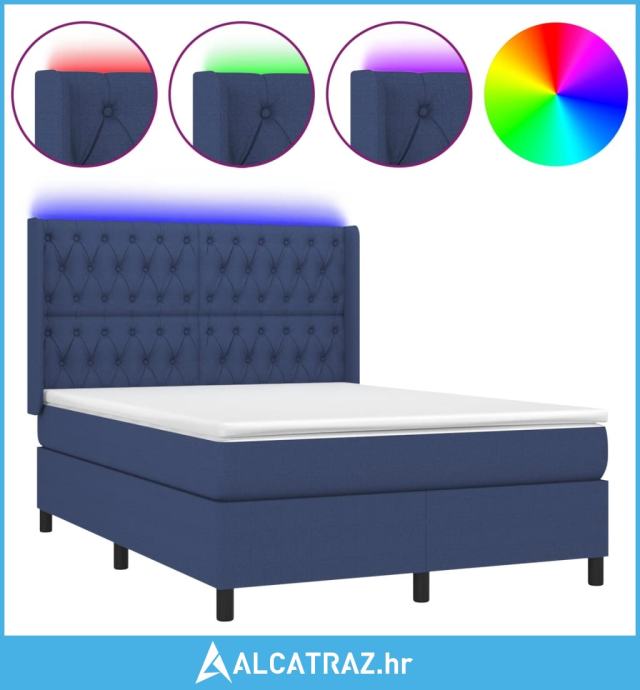 Krevet box spring s madracem LED plavi 140x200 cm od tkanine - NOVO