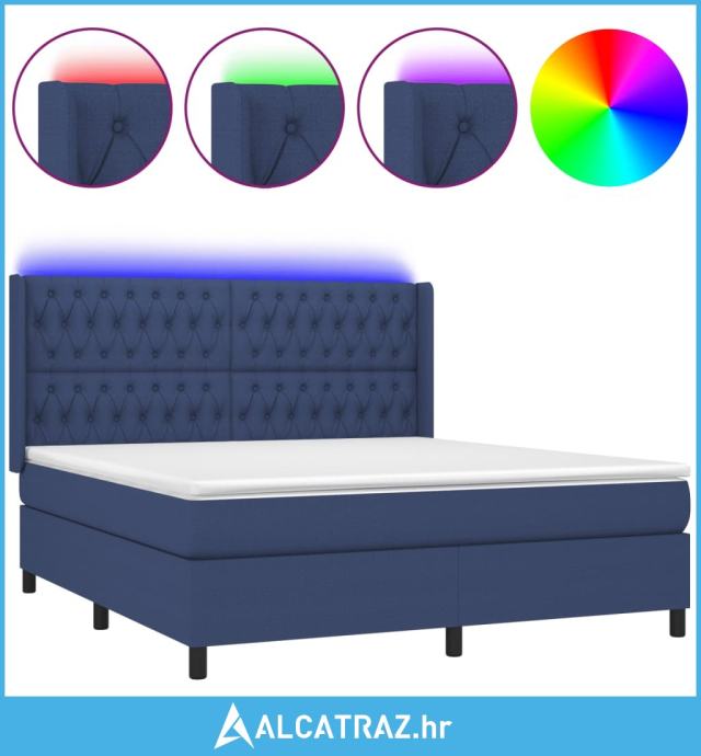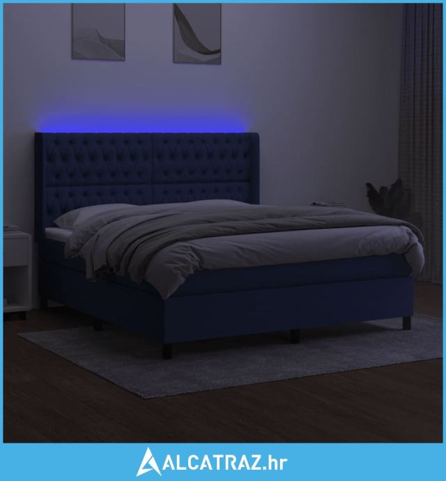 Krevet box spring s madracem LED plavi 160x200 cm od tkanine - NOVO