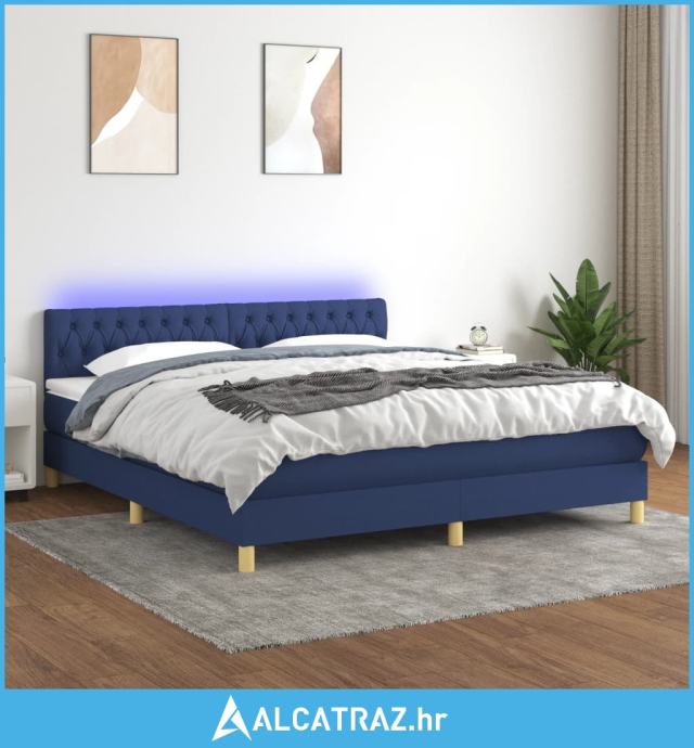 Krevet box spring s madracem LED plavi 160x200 cm od tkanine - NOVO