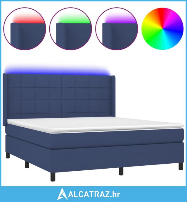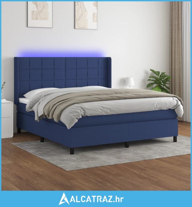 Krevet box spring s madracem LED plavi 180x200 cm od tkanine - NOVO
