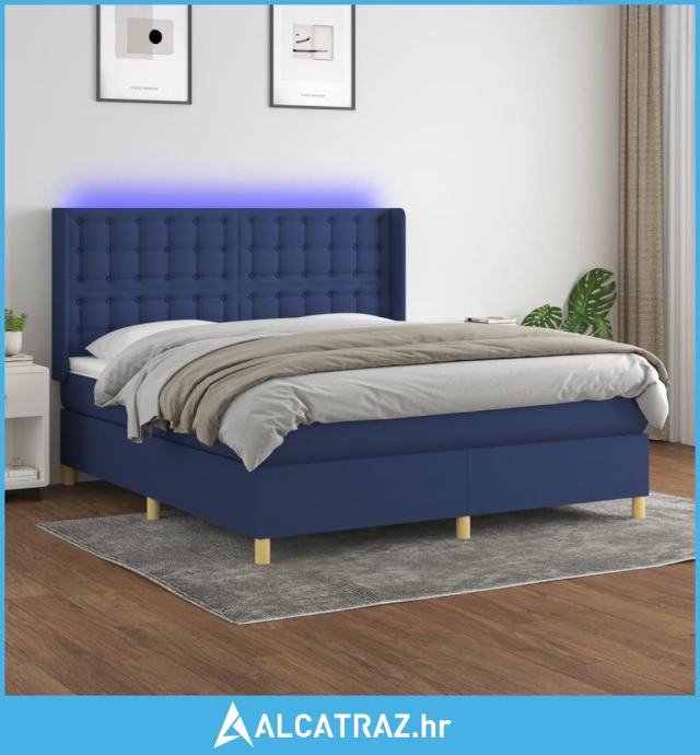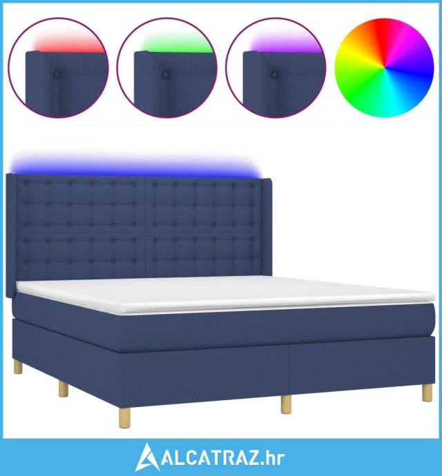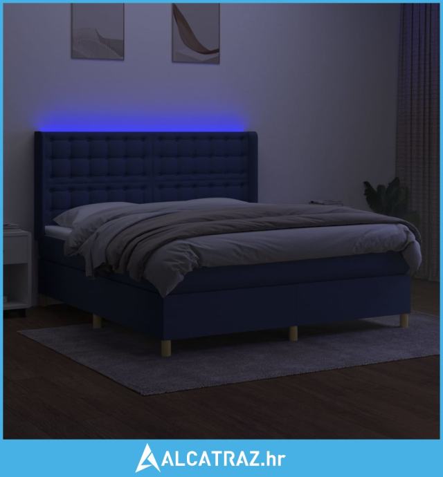 Krevet box spring s madracem LED plavi 180x200 cm od tkanine - NOVO