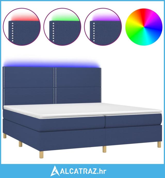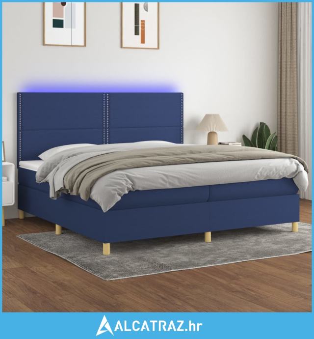 Krevet box spring s madracem LED plavi 200x200 cm od tkanine - NOVO