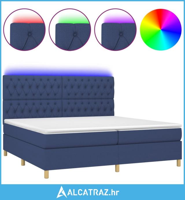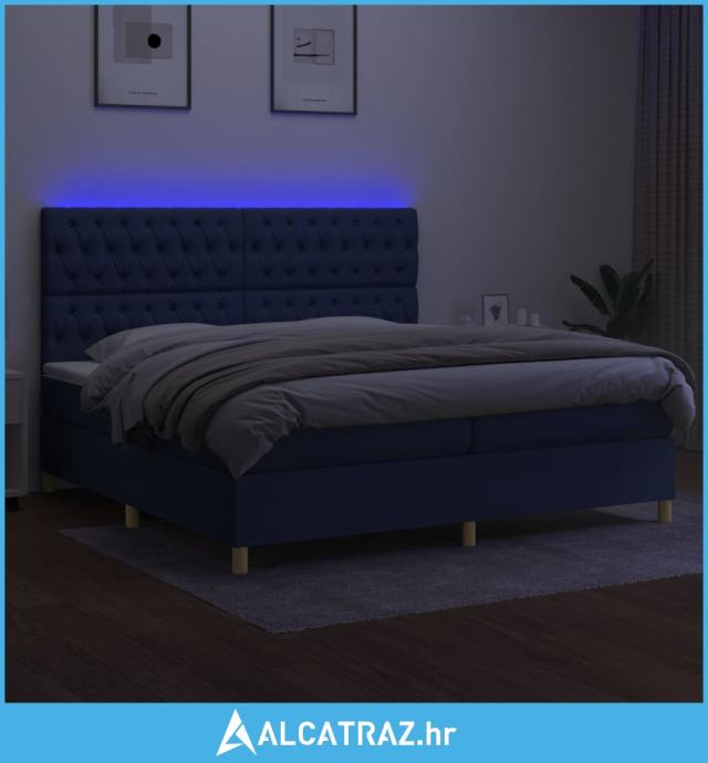 Krevet box spring s madracem LED plavi 200x200 cm od tkanine - NOVO