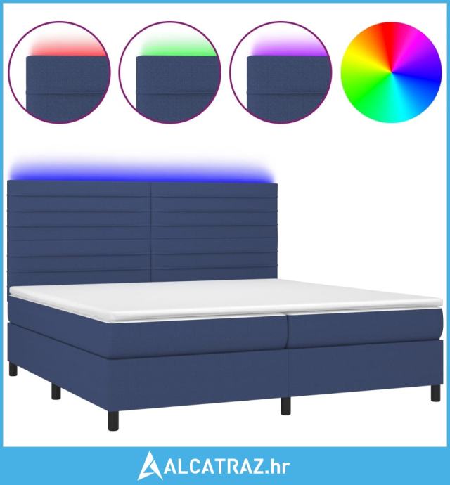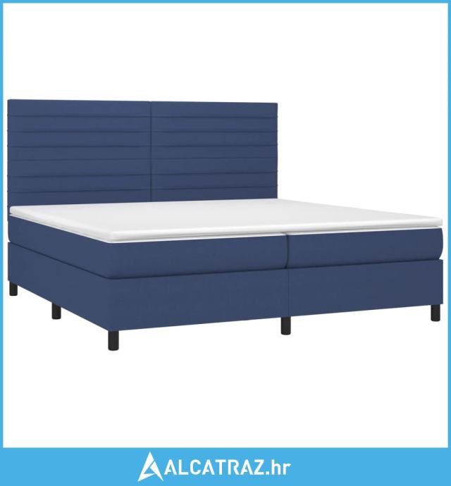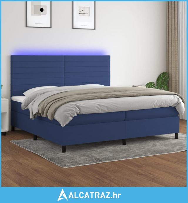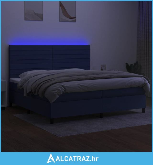Krevet box spring s madracem LED plavi 200x200 cm od tkanine - NOVO