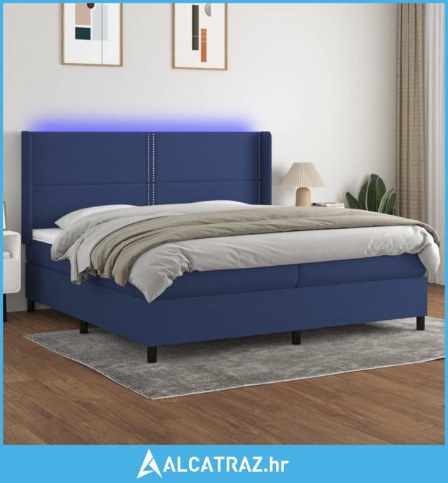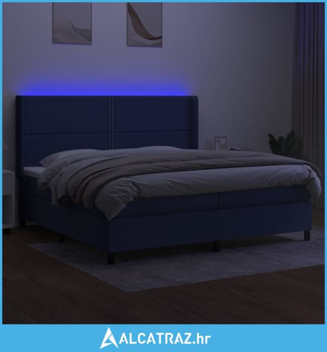 Krevet box spring s madracem LED plavi 200x200 cm od tkanine - NOVO