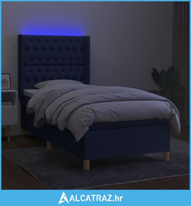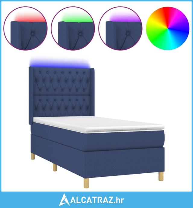 Krevet box spring s madracem LED plavi 80 x 200 cm od tkanine - NOVO