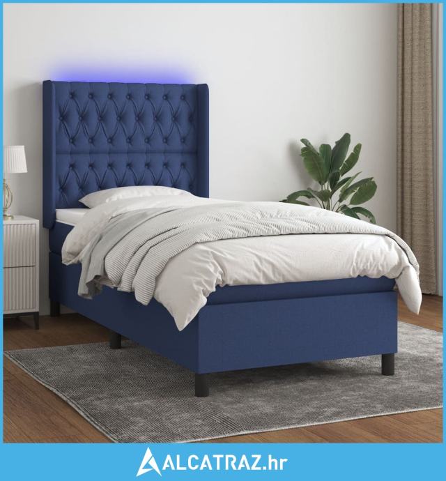Krevet box spring s madracem LED plavi 80 x 200 cm od tkanine - NOVO