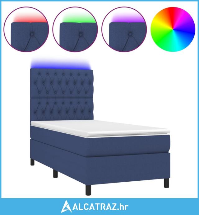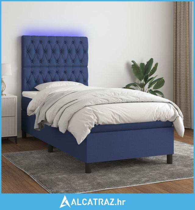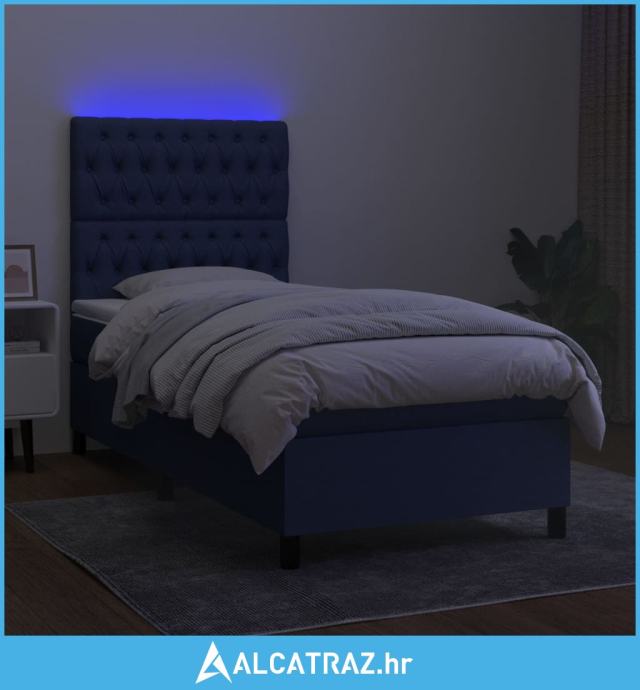 Krevet box spring s madracem LED plavi 90x190 cm od tkanine - NOVO