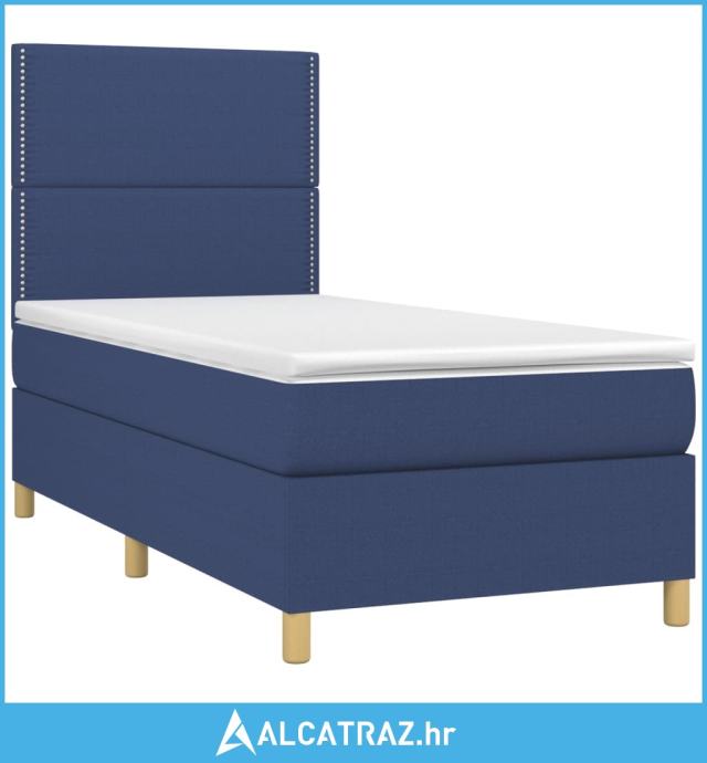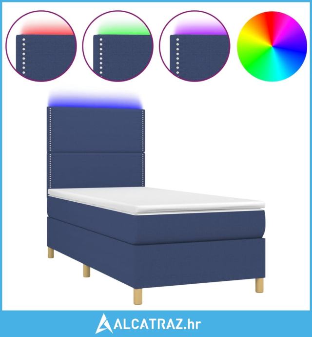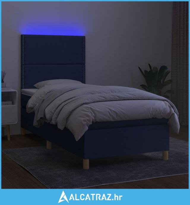 Krevet box spring s madracem LED plavi 90x190 cm od tkanine - NOVO