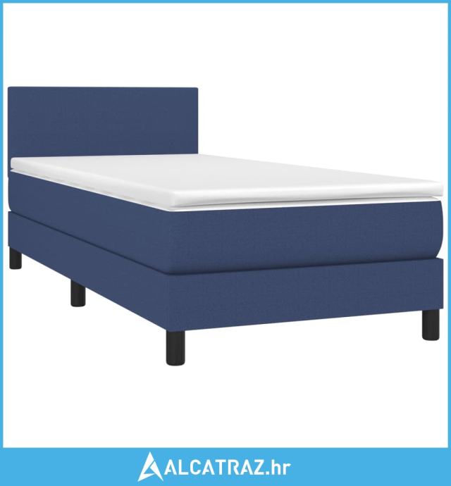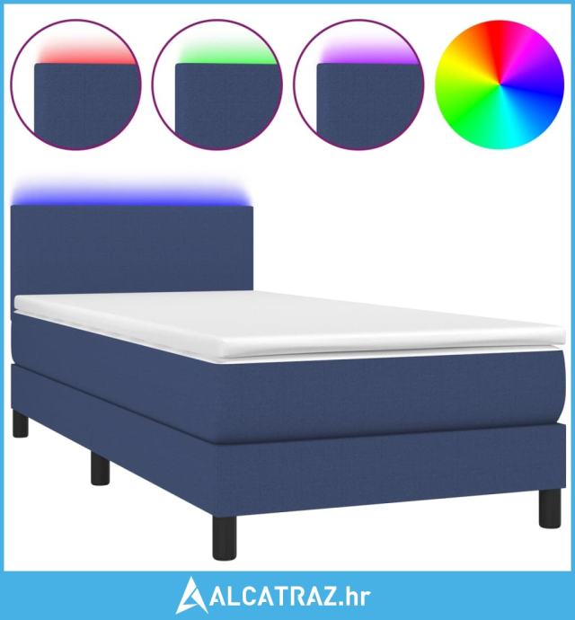 Krevet box spring s madracem LED plavi 90x190 cm od tkanine - NOVO