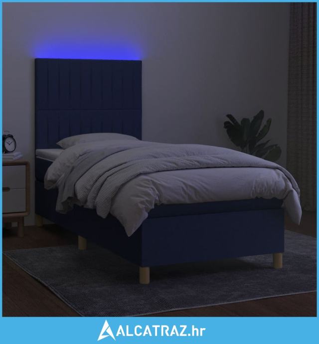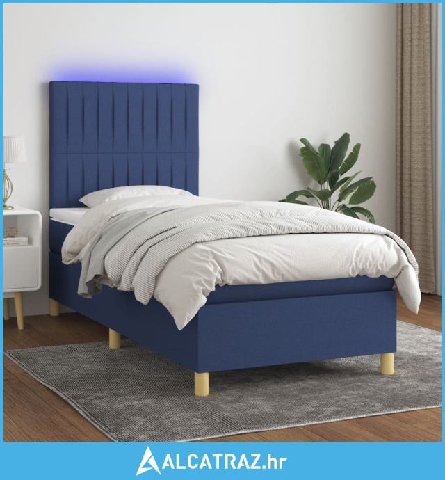 Krevet box spring s madracem LED plavi 90x190 cm od tkanine - NOVO