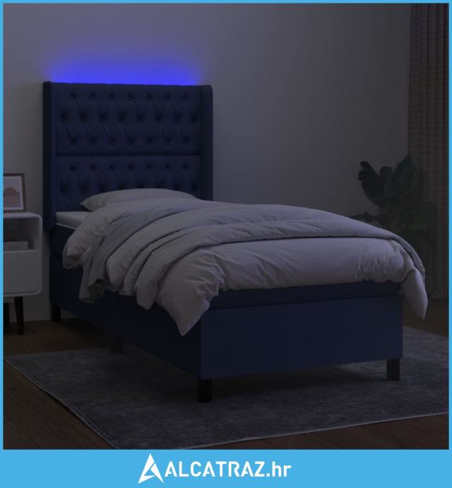 Krevet box spring s madracem LED plavi 90x200 cm od tkanine - NOVO