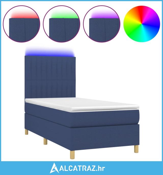 Krevet box spring s madracem LED plavi 90x200 cm od tkanine - NOVO