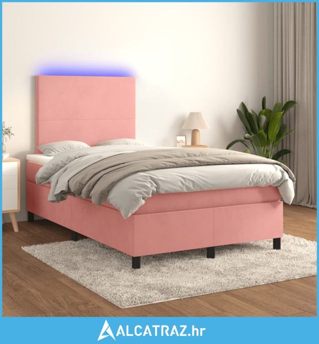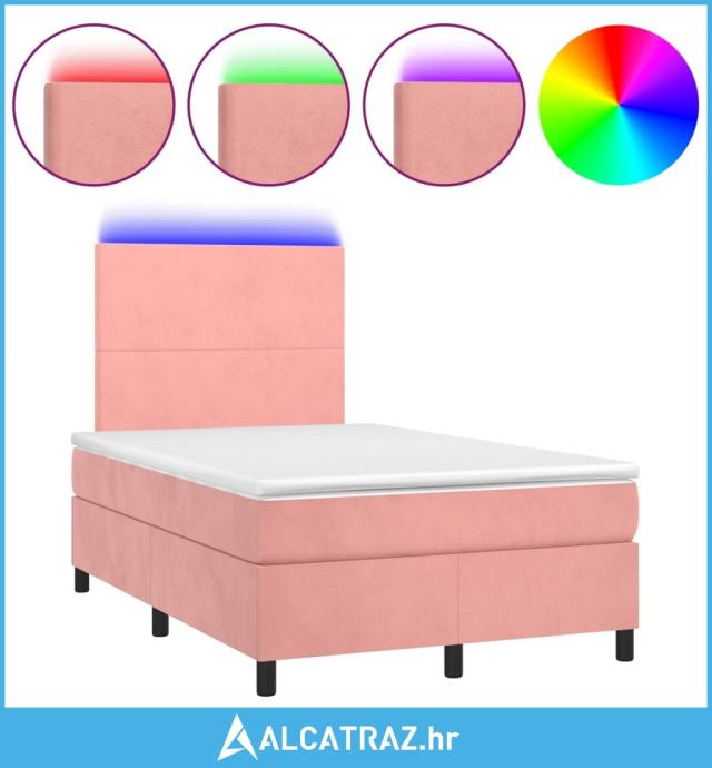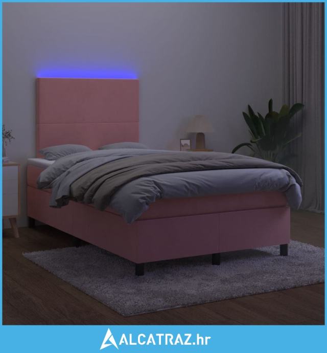 Krevet box spring s madracem LED ružičasti 120x190cm baršunasti - NOVO