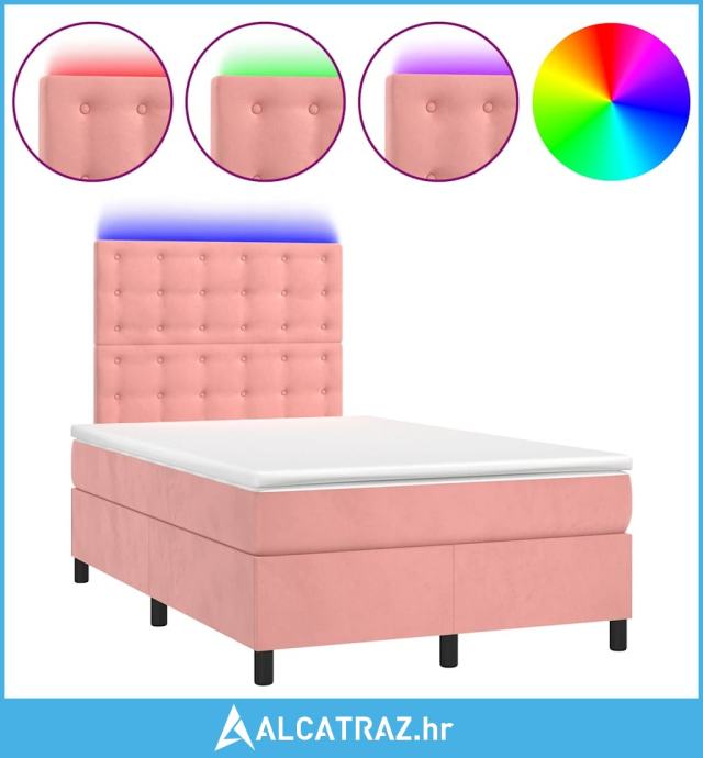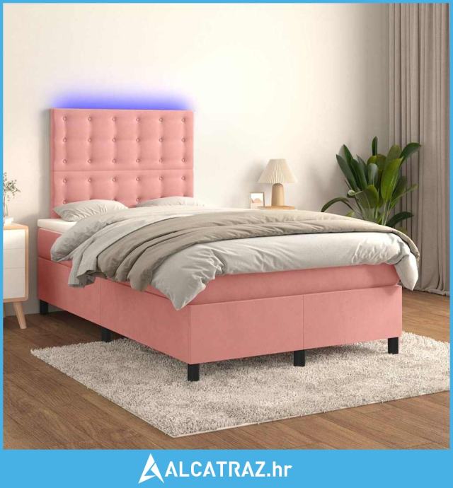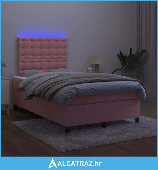 Krevet box spring s madracem LED ružičasti 120x190cm baršunasti - NOVO