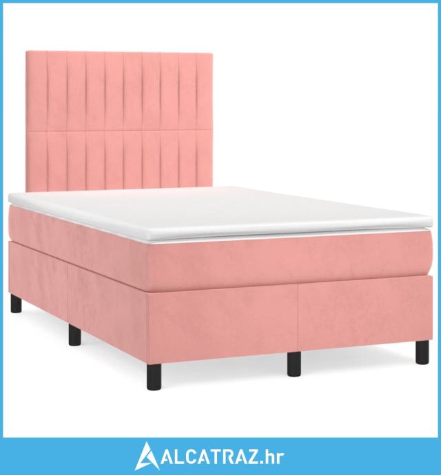 Krevet box spring s madracem LED ružičasti 120x190cm baršunasti - NOVO