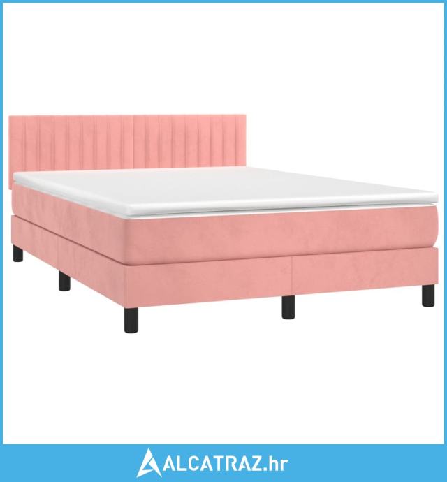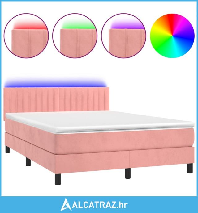 Krevet box spring s madracem LED ružičasti 140x190cm baršunasti - NOVO