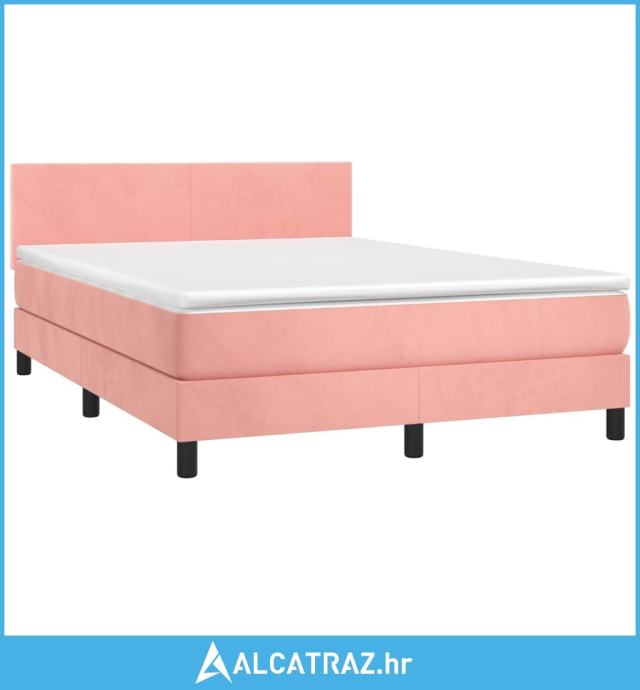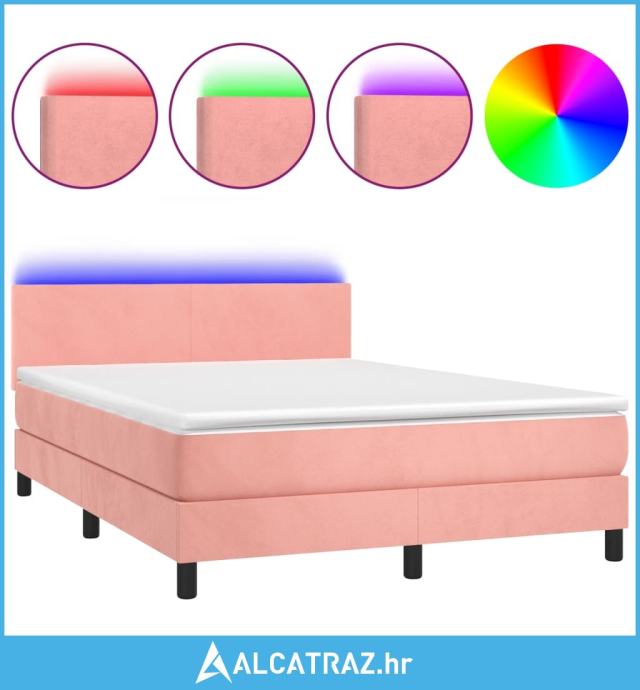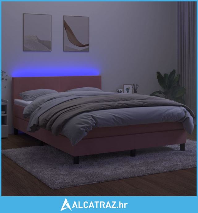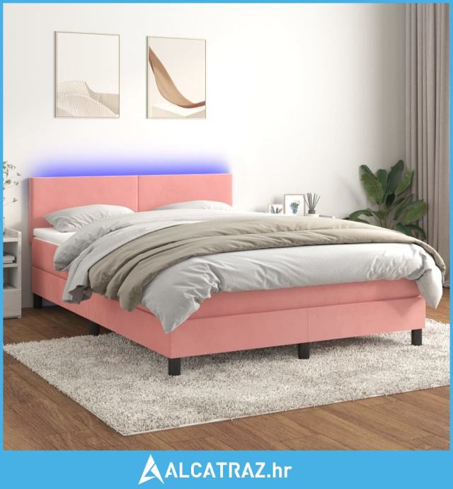Krevet box spring s madracem LED ružičasti 140x200cm baršunasti - NOVO