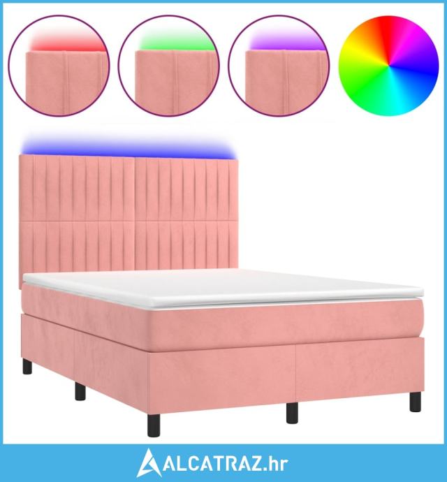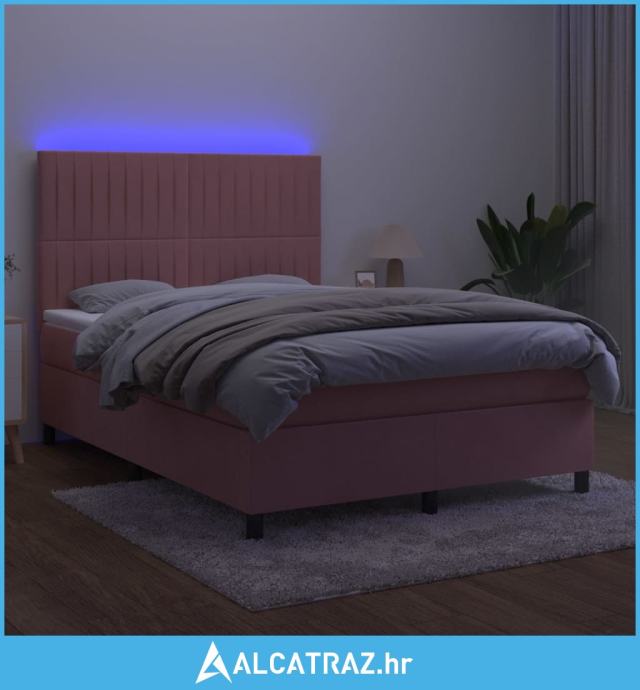 Krevet box spring s madracem LED ružičasti 140x200cm baršunasti - NOVO