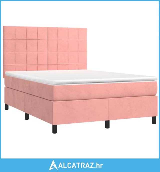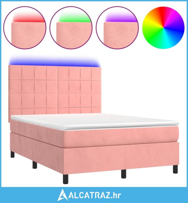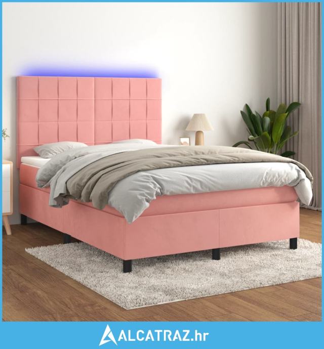 Krevet box spring s madracem LED ružičasti 140x200cm baršunasti - NOVO