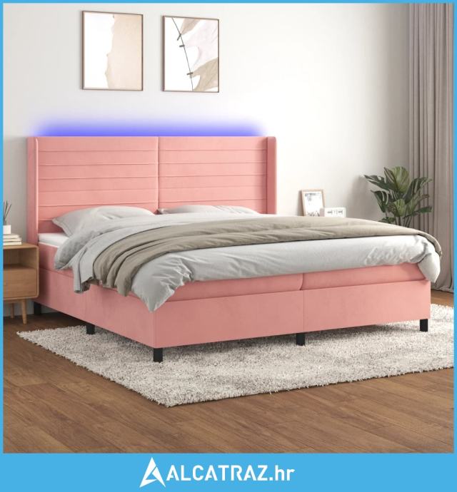 Krevet box spring s madracem LED ružičasti 200x200cm baršunasti - NOVO