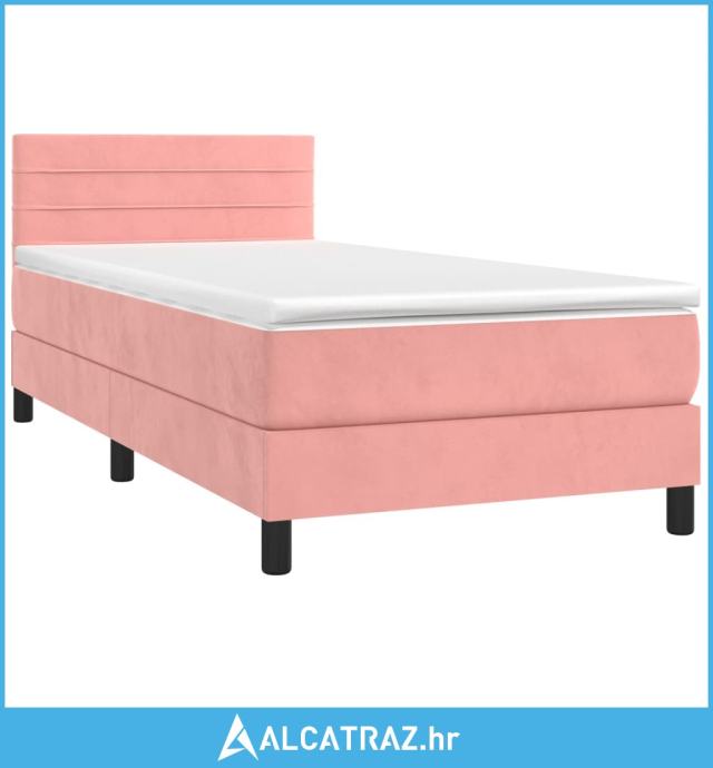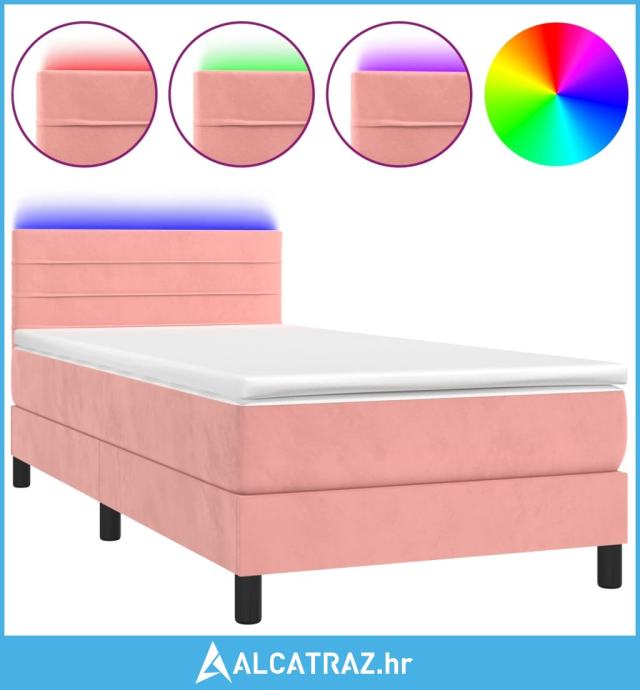 Krevet box spring s madracem LED ružičasti 90x190 cm baršunasti - NOVO