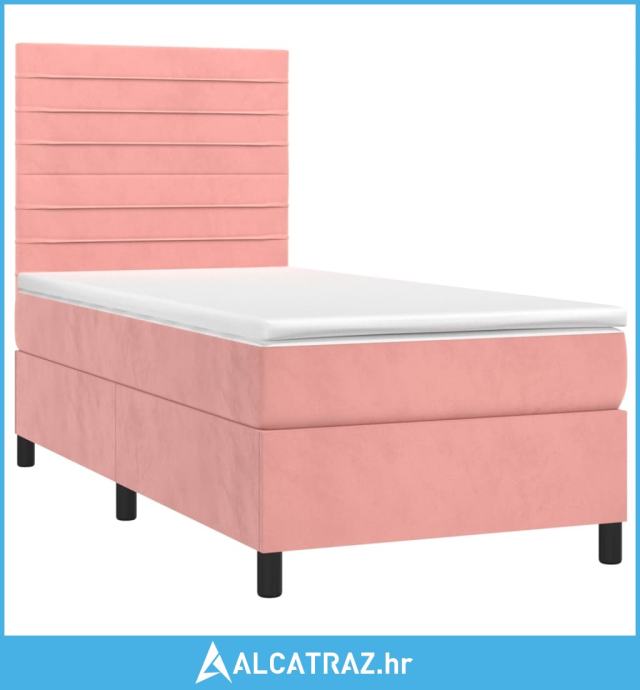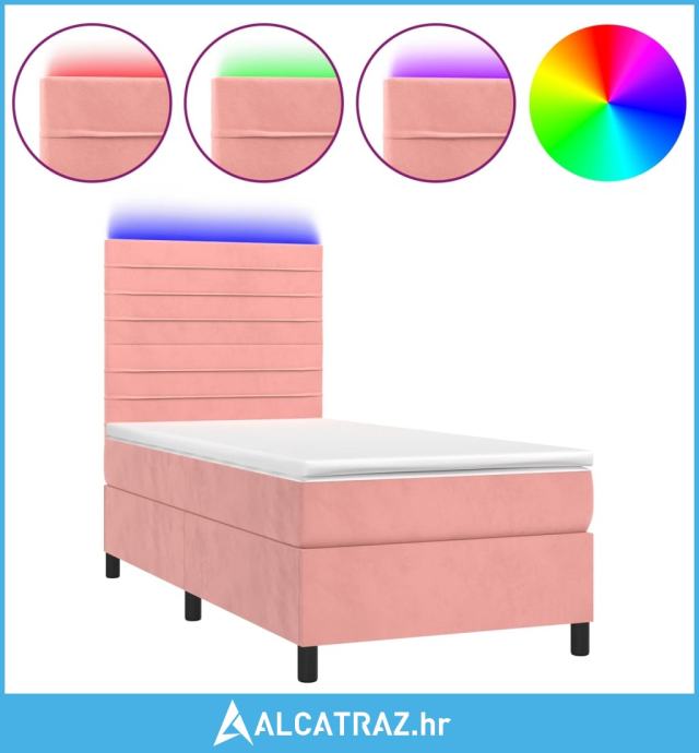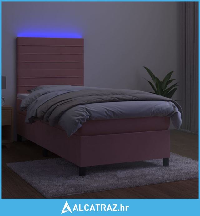 Krevet box spring s madracem LED ružičasti 90x190 cm baršunasti - NOVO