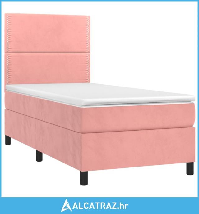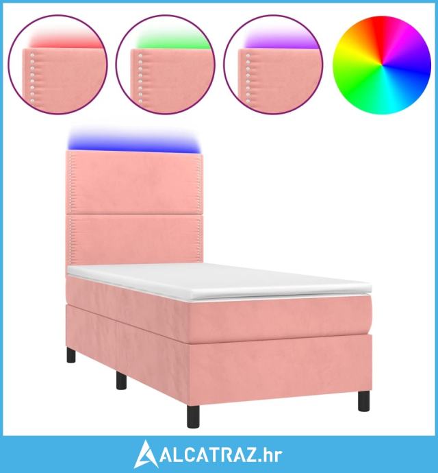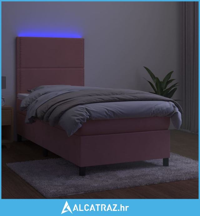 Krevet box spring s madracem LED ružičasti 90x200 cm baršunasti - NOVO