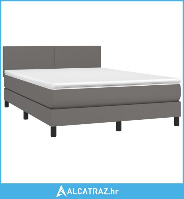 Krevet box spring s madracem LED sivi 140x190cm od umjetne kože - NOVO