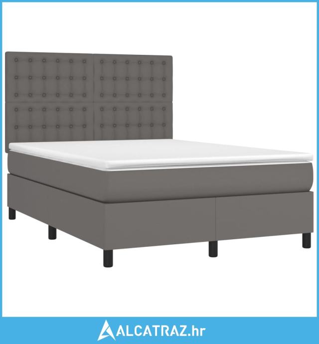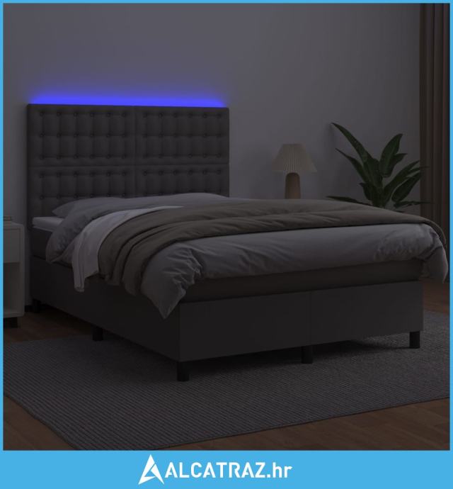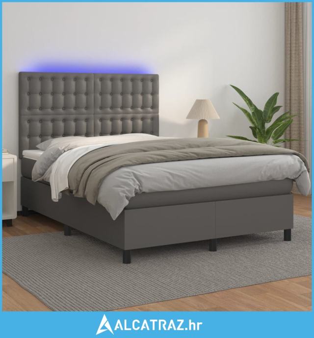 Krevet box spring s madracem LED sivi 140x190cm od umjetne kože - NOVO