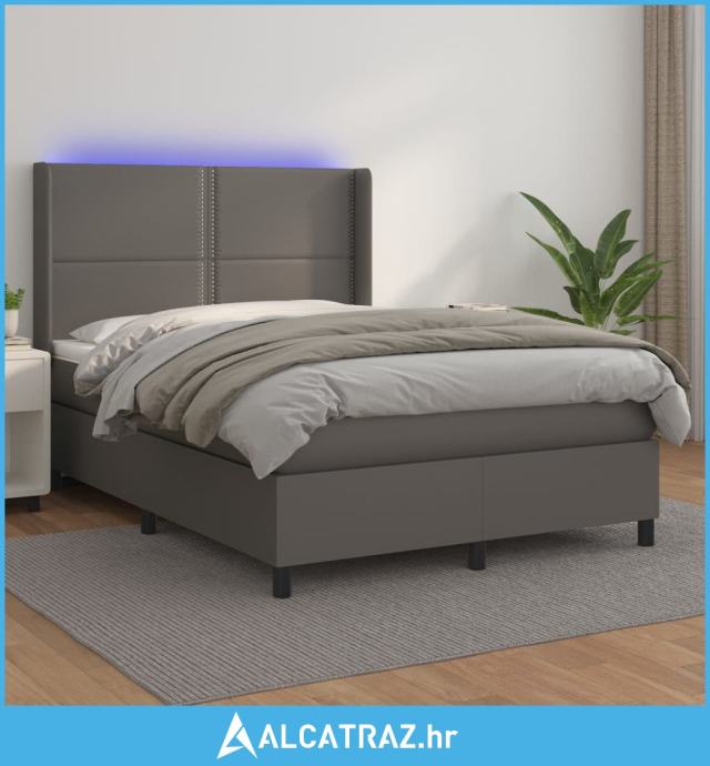 Krevet box spring s madracem LED sivi 140x190cm od umjetne kože - NOVO