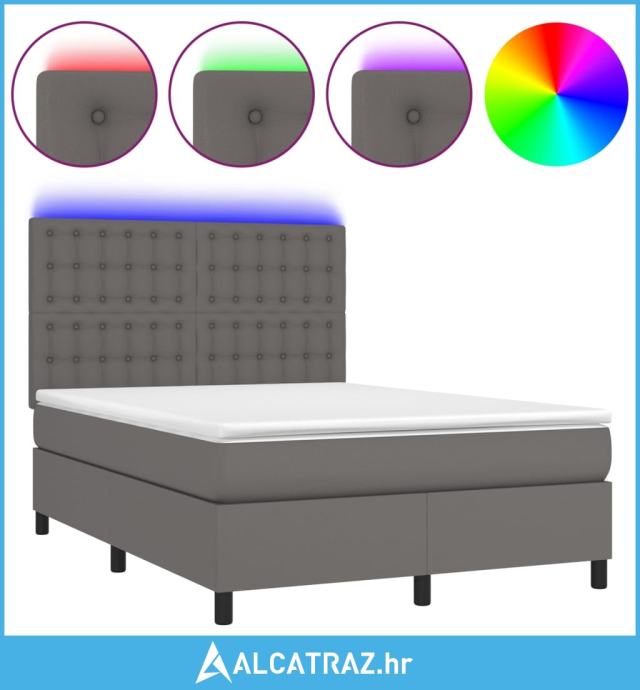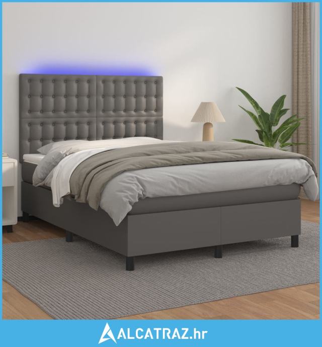 Krevet box spring s madracem LED sivi 140x200cm od umjetne kože - NOVO