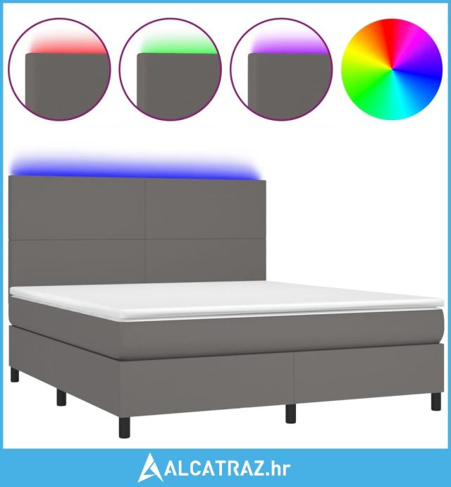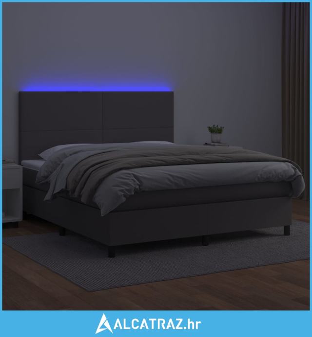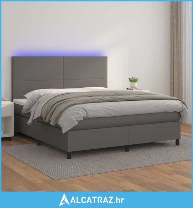 Krevet box spring s madracem LED sivi 180x200cm od umjetne kože - NOVO