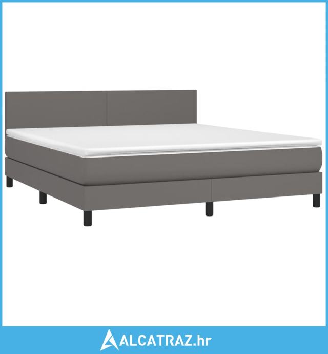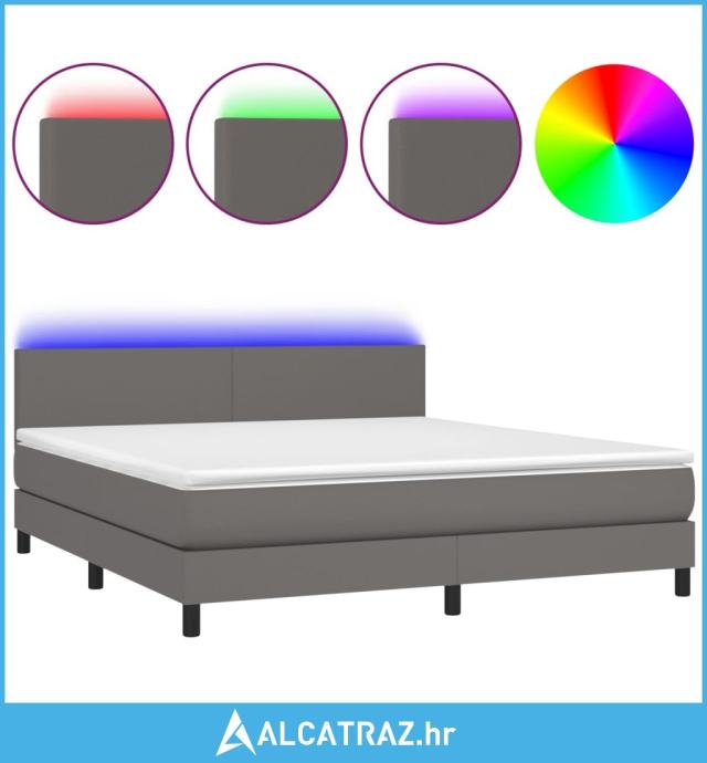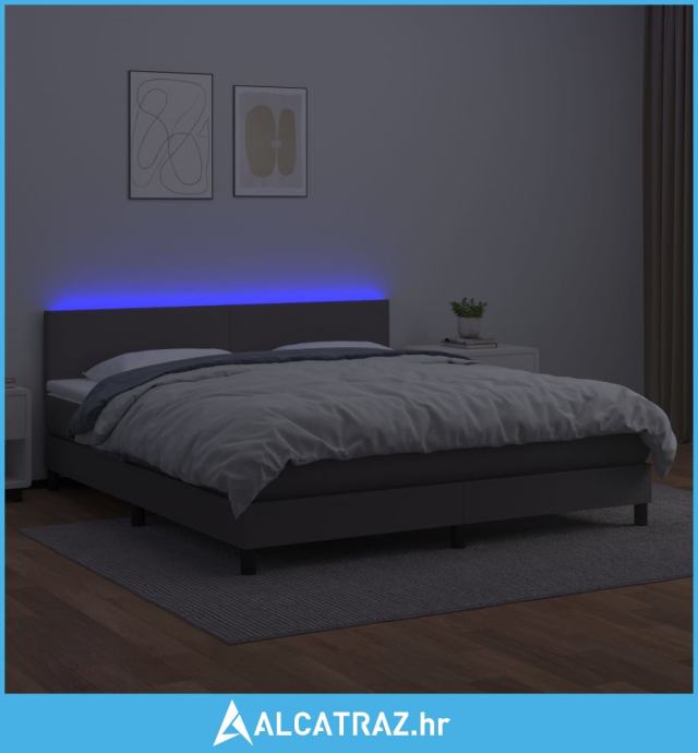 Krevet box spring s madracem LED sivi 180x200cm od umjetne kože - NOVO