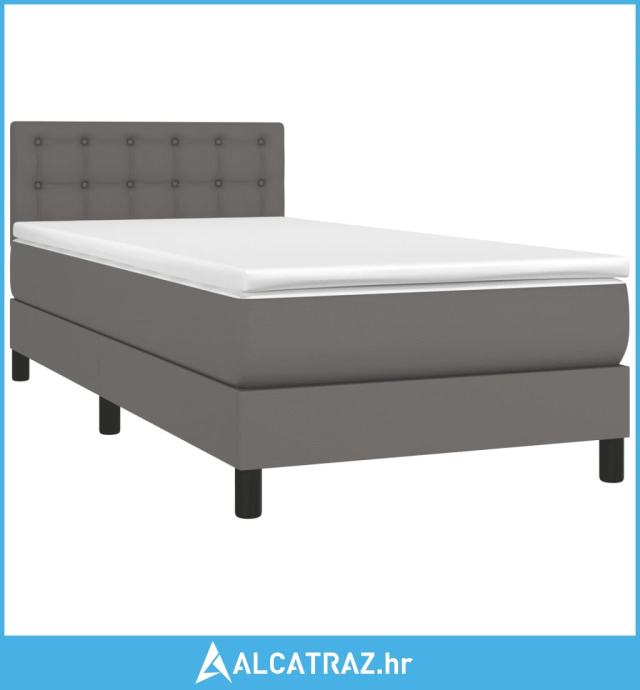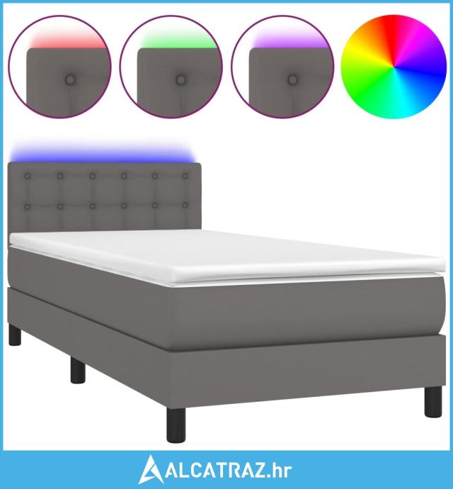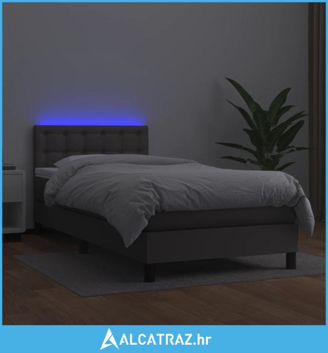 Krevet box spring s madracem LED sivi 80x200 cm od umjetne kože - NOVO