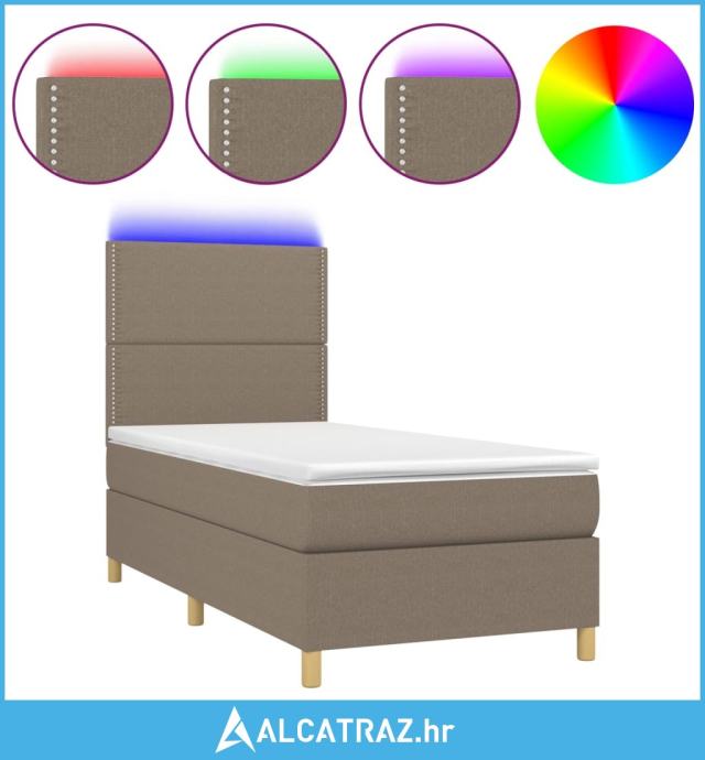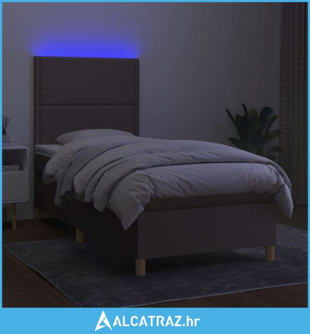 Krevet box spring s madracem LED smeđesivi 100x200 cm tkanina - NOVO
