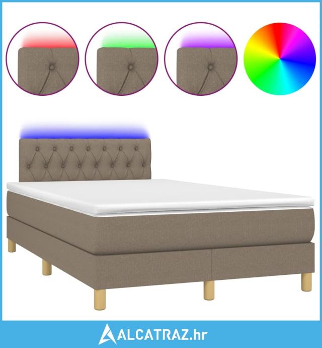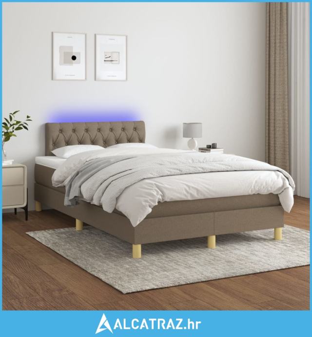 Krevet box spring s madracem LED smeđesivi 120 x 200 cm tkanina - NOVO