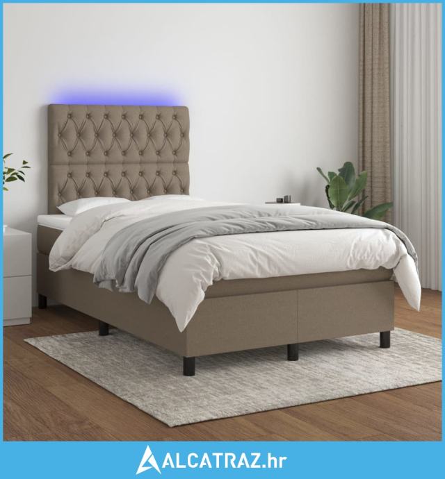 Krevet box spring s madracem LED smeđesivi 120 x 200 cm tkanina - NOVO