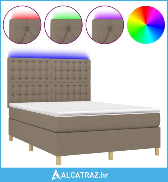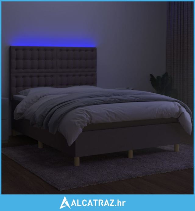 Krevet box spring s madracem LED smeđesivi 140x190 cm tkanina - NOVO