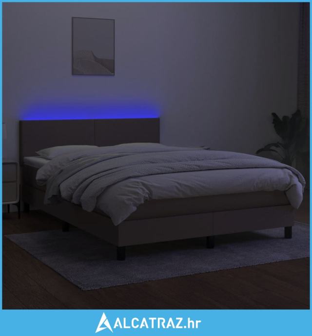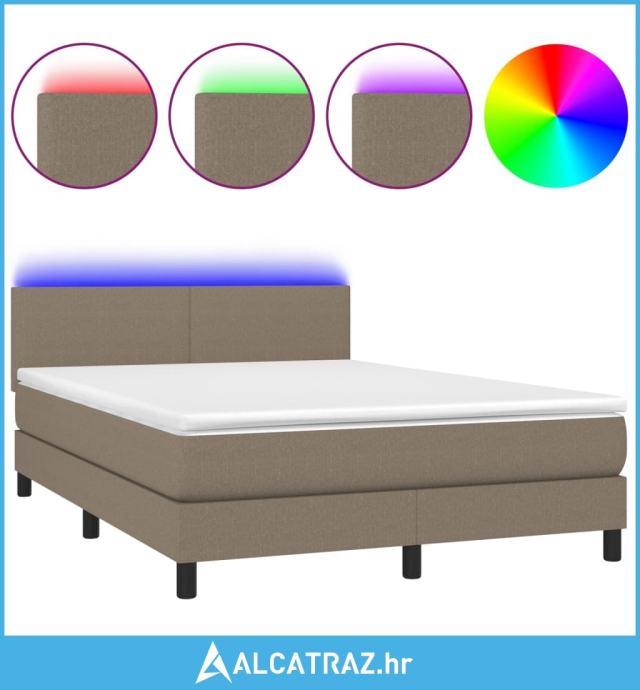 Krevet box spring s madracem LED smeđesivi 140x190 cm tkanina - NOVO