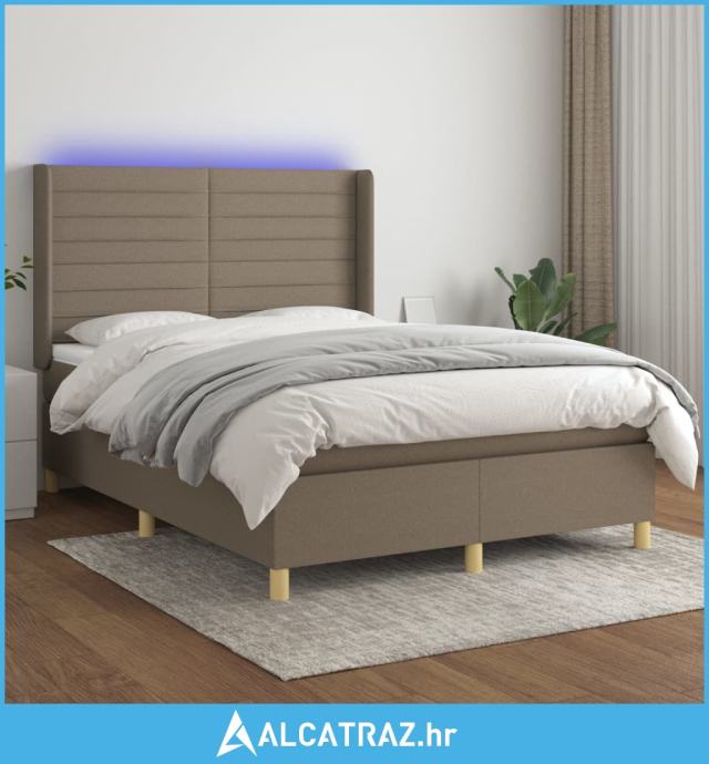 Krevet box spring s madracem LED smeđesivi 140x190 cm tkanina - NOVO