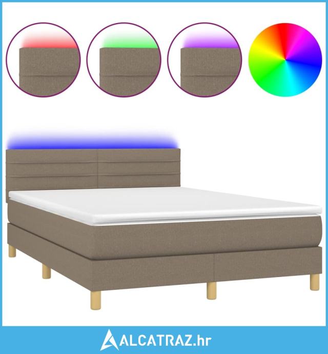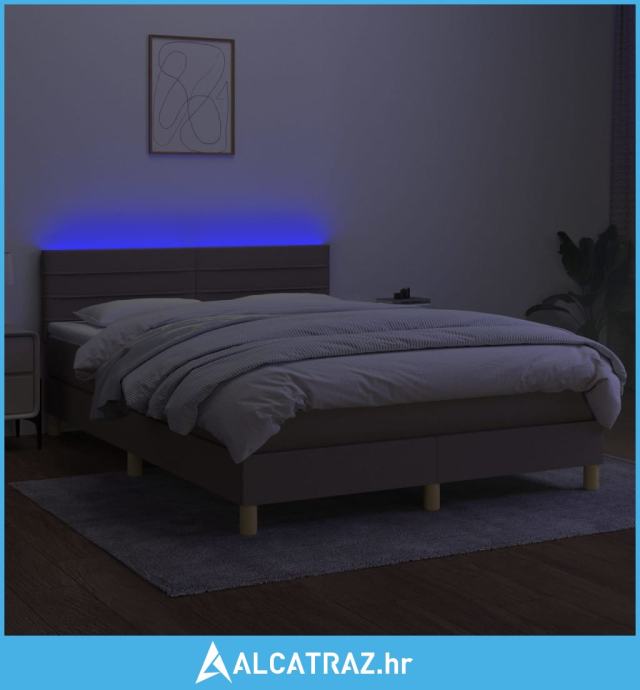 Krevet box spring s madracem LED smeđesivi 140x200 cm tkanina - NOVO