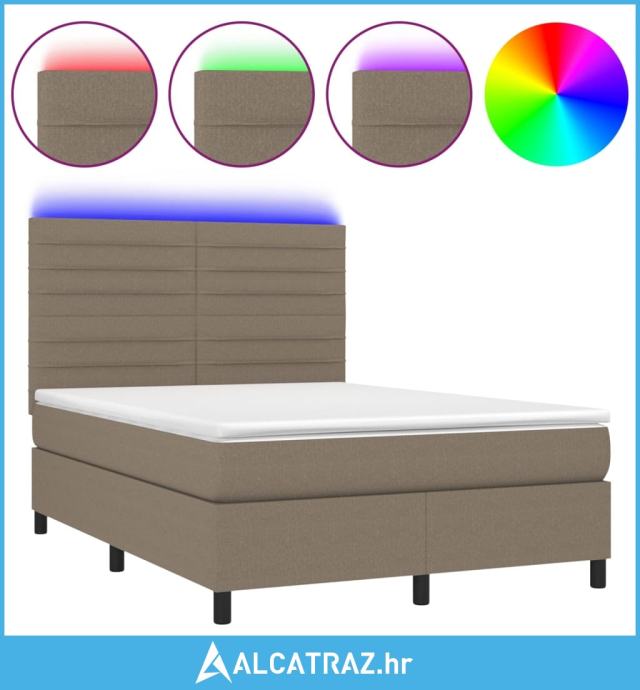 Krevet box spring s madracem LED smeđesivi 140x200 cm tkanina - NOVO