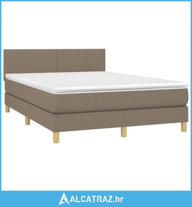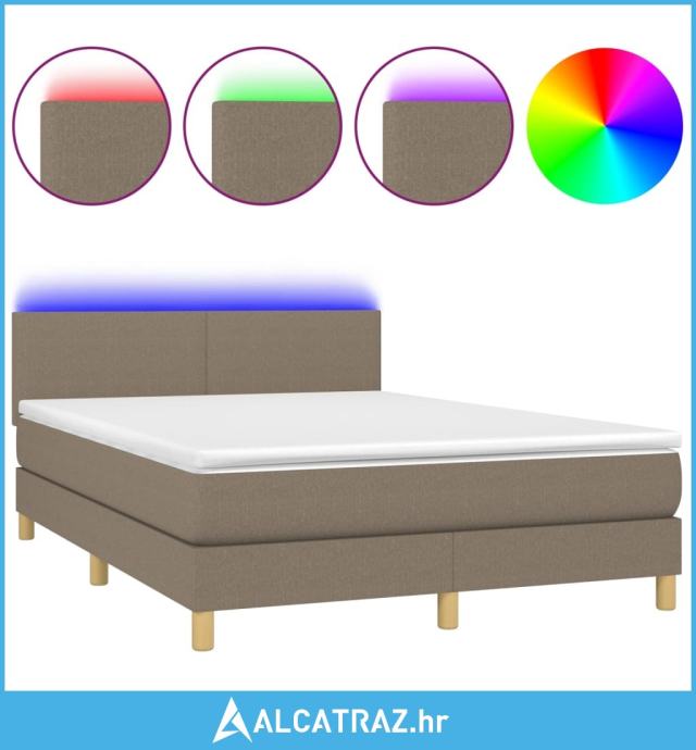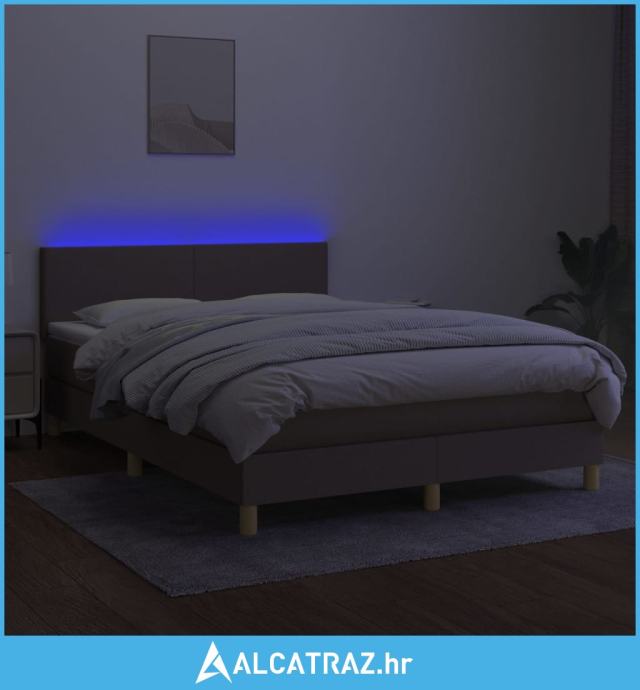 Krevet box spring s madracem LED smeđesivi 140x200 cm tkanina - NOVO