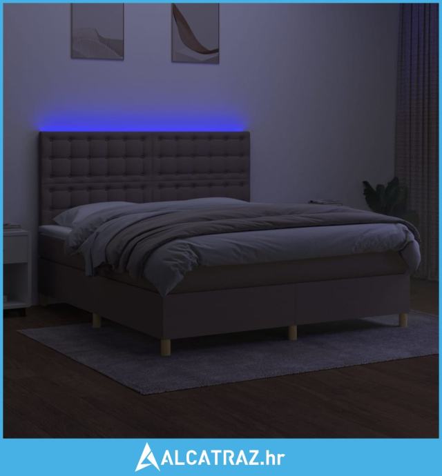 Krevet box spring s madracem LED smeđesivi 160x200 cm tkanina - NOVO